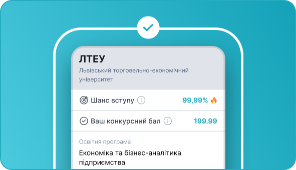 Після обробки даних ти отримаєш детальний результат, що включатиме твої шанси на вступ до університету. Переглядай всі місця вступу та додавай до обраного найкращі!
