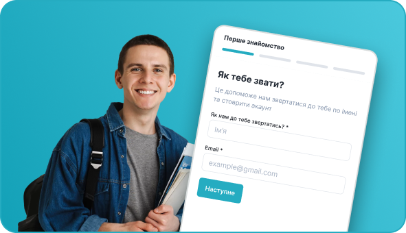 Розпочни свій шлях до університету, який відповідає твоїм інтересам та можливостям. Заповни нашу коротку анкету, щоб ми могли підібрати оптимальний варіант для тебе.